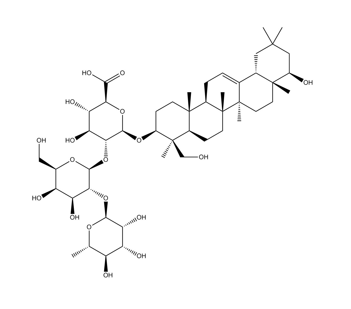 【英文別稱】 β-D-Glucopyranosiduronic acid, (3β,4β,22β)-22,23-dihydroxyolean-12-en-3-yl O-6-deoxy-α-L-Mannopyranosyl-(1→2)-O-β-D-galactopyranosyl-(1→2)-